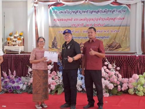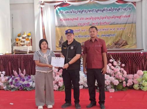 งานประเพณีบวงสรวงศาลหลักเมืองลำดวน ชวนชมของดี ประเพณีบุญขวัญข้าวเมืองสุรพินท์ ประจำปี 2569 ณ หอประชุมอำเภอลำดวน จังหวัดสุรินทร์ นายฐวัฒน์ ช่วยชูวงษ์ นายอำเภอลำดวน พร้อมด้วยหัวหน้าส่วนราชการ/ผู้บริหารท้องถิ่น/กำนัน/ผู้ใหญ่บ้าน/ผู้นำชุมชน/ประชาชนเข้าร่วมกิจกรรมประกวดผ้าไหม อำเภอลำดวน